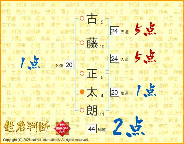 古藤正太朗さんの天運は24画の5点!