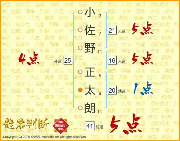 小佐野正太朗さんの総運は41画の5点!