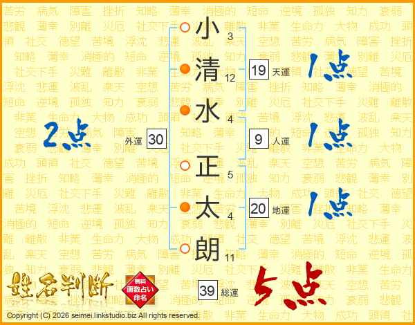 小清水正太朗さんの総運は39画の5点!