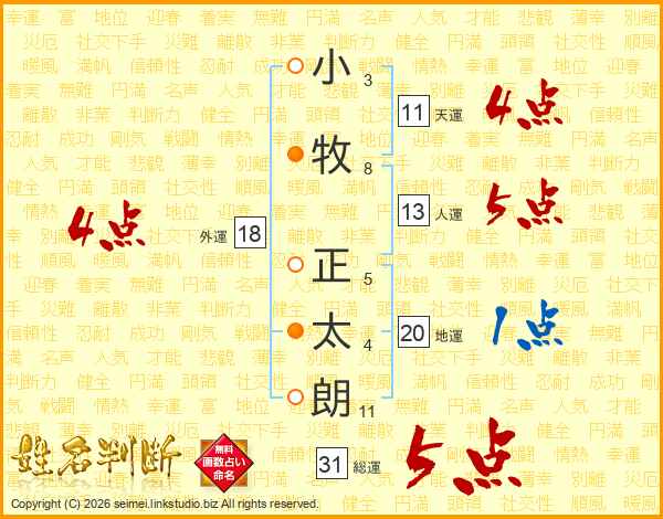 小牧正太朗さんの総運は31画の5点!