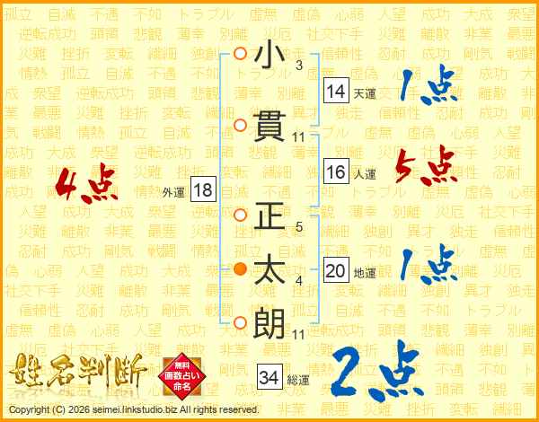 小貫正太朗さんの総運は34画の2点!