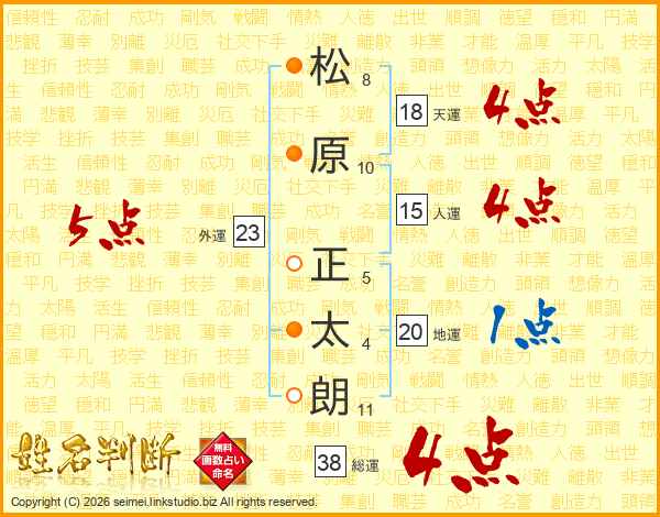 松原正太朗さんの総運は38画の4点!