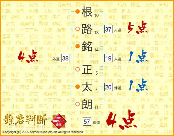根路銘正太朗さんの総運は57画の4点!