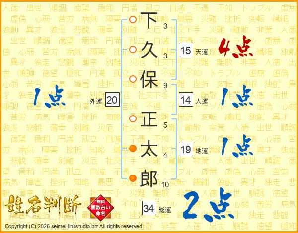 下(3画)久(3画)保(9画) 正(5画)太(4画)郎(10画)