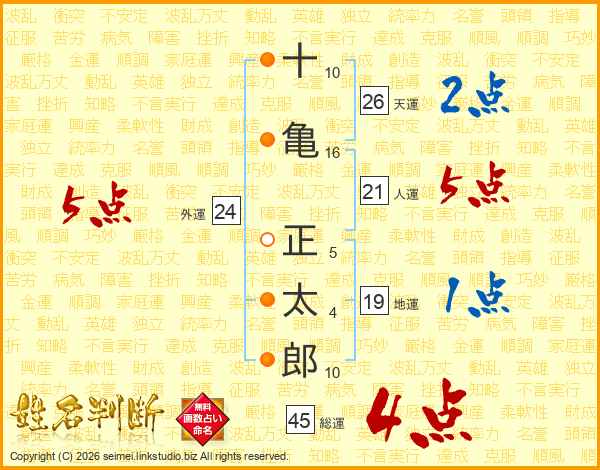 十亀正太郎さんの総運は45画の4点!