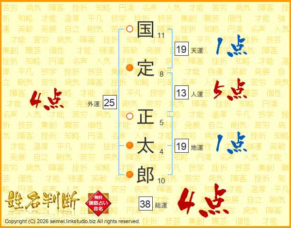 国定正太郎さんの総運は38画の4点!