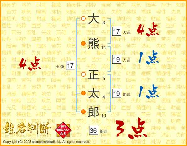 大(3画)熊(14画) 正(5画)太(4画)郎(10画)