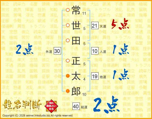 常世田正太郎さんの天運は21画の5点!