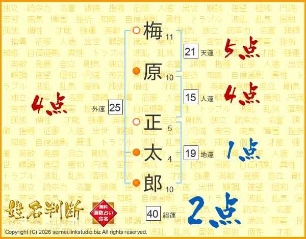 梅原正太郎さんの総運は40画の2点!