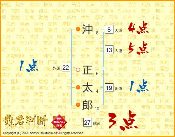 沖(8画) 正(5画)太(4画)郎(10画)