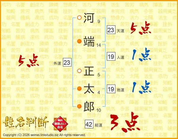 河端正太郎さんの天運は23画の5点!
