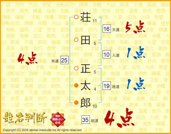 荘(11画)田(5画) 正(5画)太(4画)郎(10画)