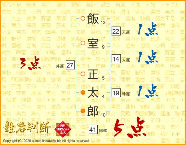 飯室正太郎さんの総運は41画の5点!
