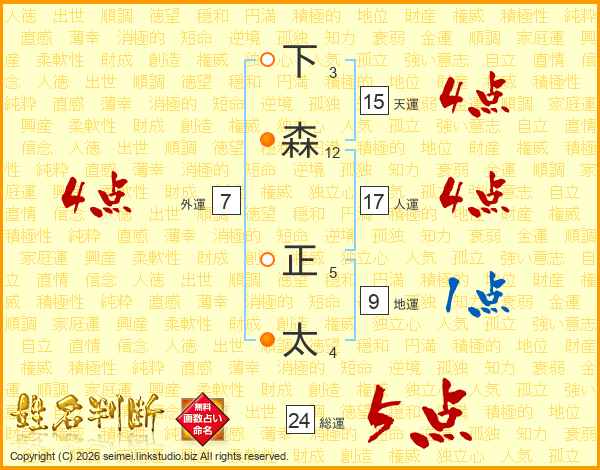 下森正太さんの総運は24画の5点!