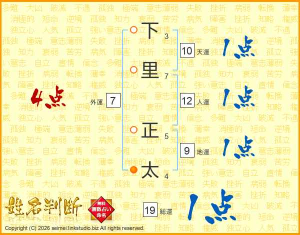 下里正太さんの総運は19画の1点!