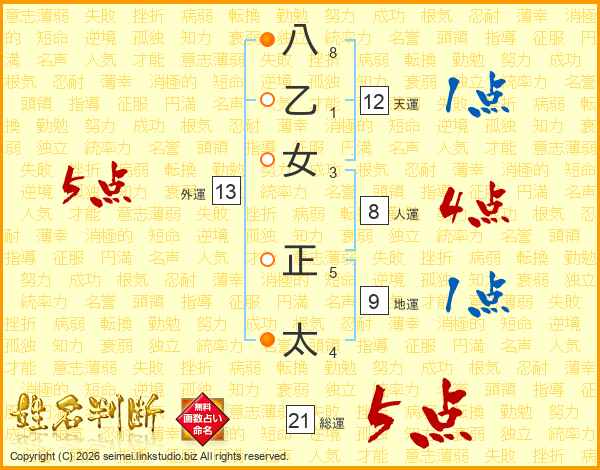 八乙女正太さんの総運は21画の5点!
