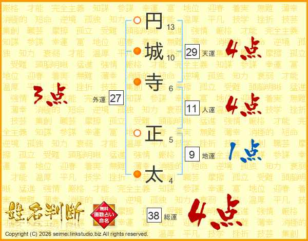 円(13画)城(10画)寺(6画) 正(5画)太(4画)