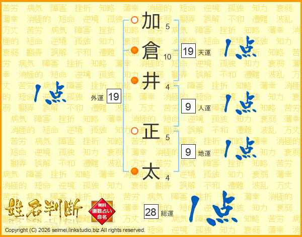 加(5画)倉(10画)井(4画) 正(5画)太(4画)