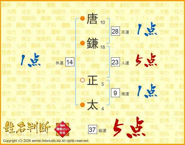 唐鎌正太さんの総運は37画の5点!