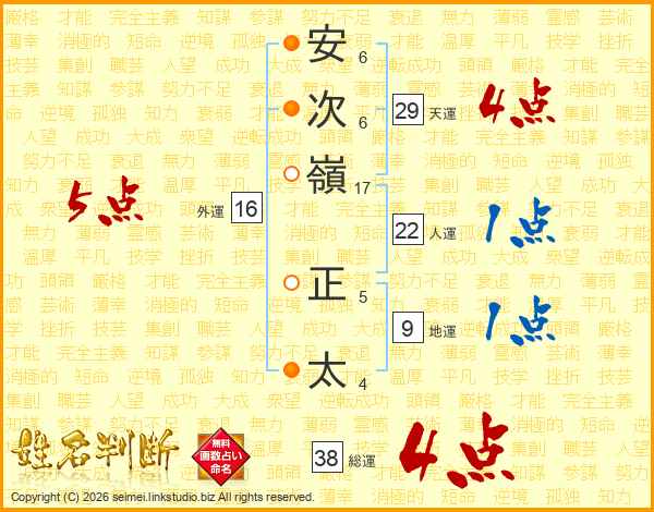 安次嶺正太さんの総運は38画の4点!