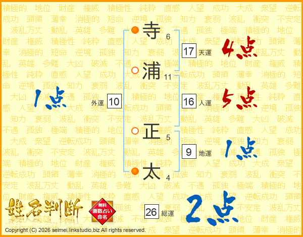 寺浦正太さんの総運は26画の2点!