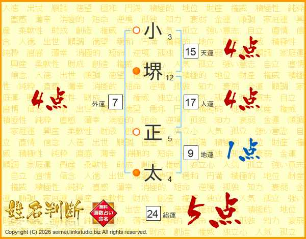 小堺正太さんの総運は24画の5点!
