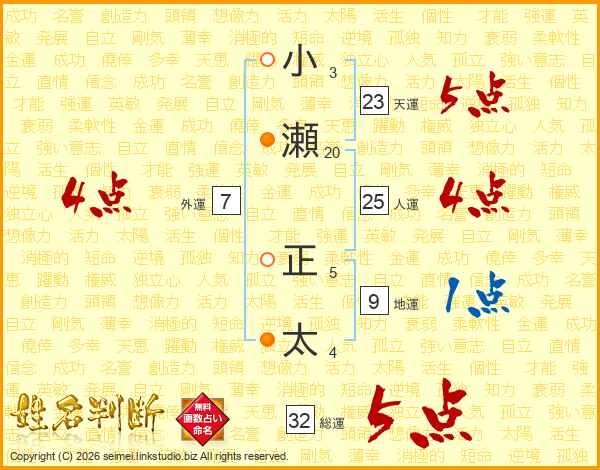 小瀬正太さんの総運は32画の5点!