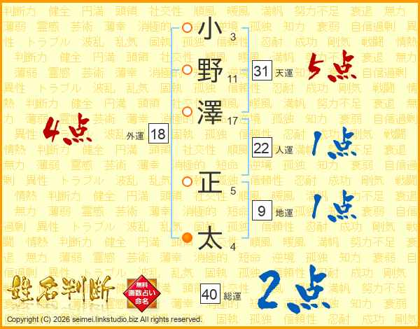 小野澤正太さんの天運は31画の5点!