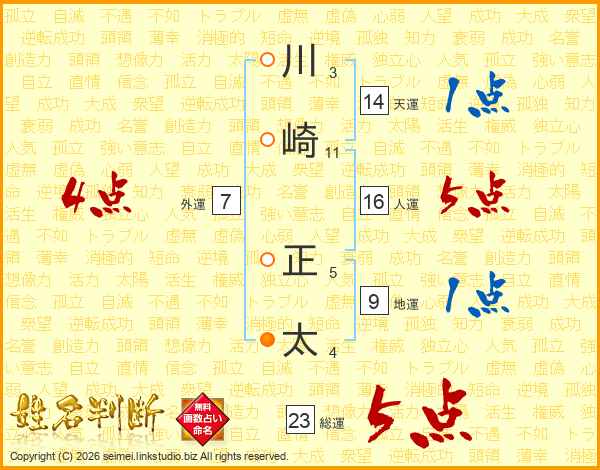 川崎正太さんの人運は16画の5点!