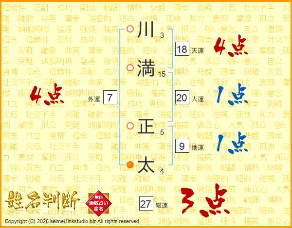川(3画)満(15画) 正(5画)太(4画)