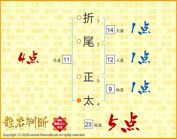 折尾正太さんの総運は23画の5点!