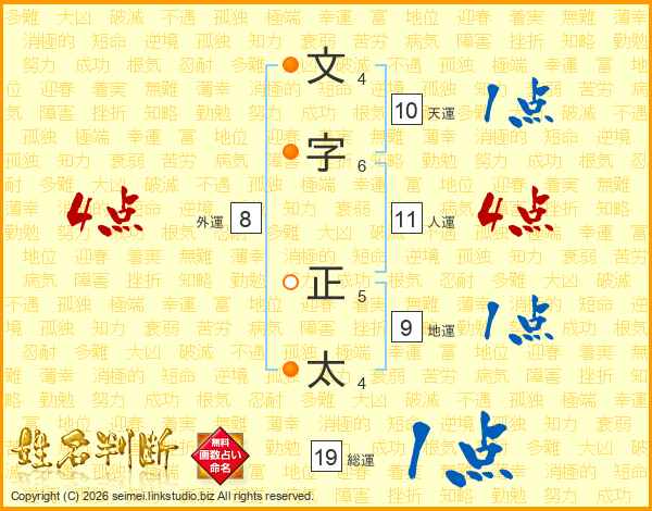 文字正太さんの人運は11画の4点!