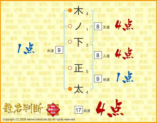 木ノ下正太さんの総運は17画の4点!