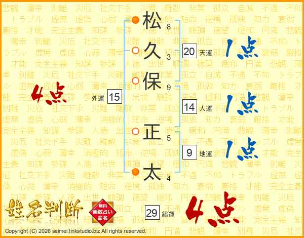 松(8画)久(3画)保(9画) 正(5画)太(4画)