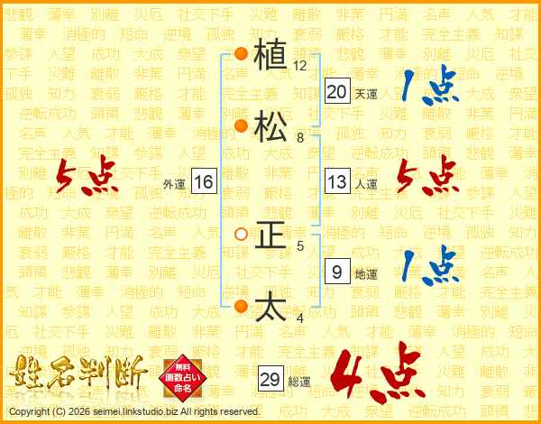 植松正太さんの総運は29画の4点!