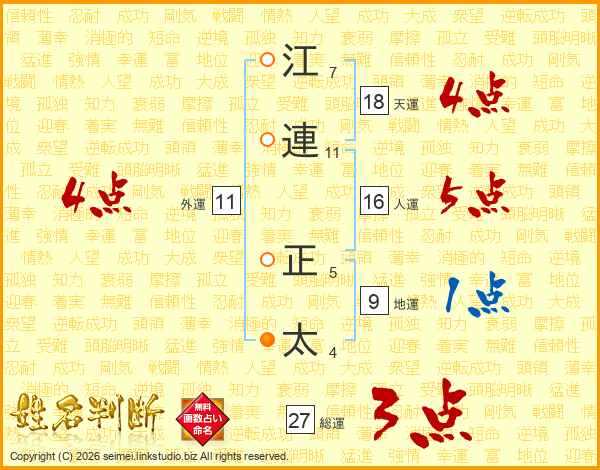 江(7画)連(11画) 正(5画)太(4画)