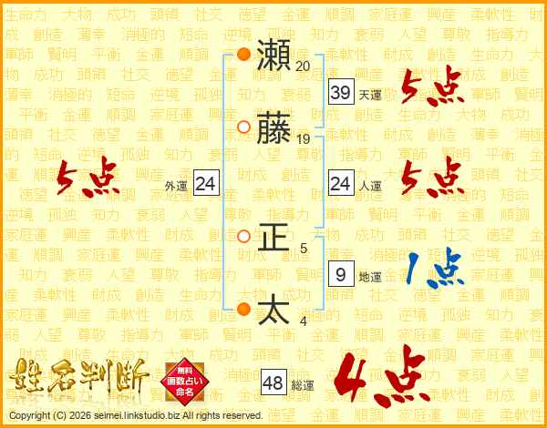 瀬藤正太さんの天運は39画の5点!