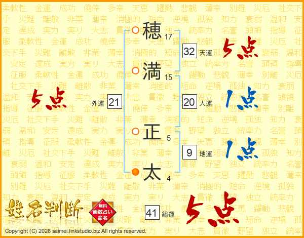 穂満正太さんの総運は41画の5点!