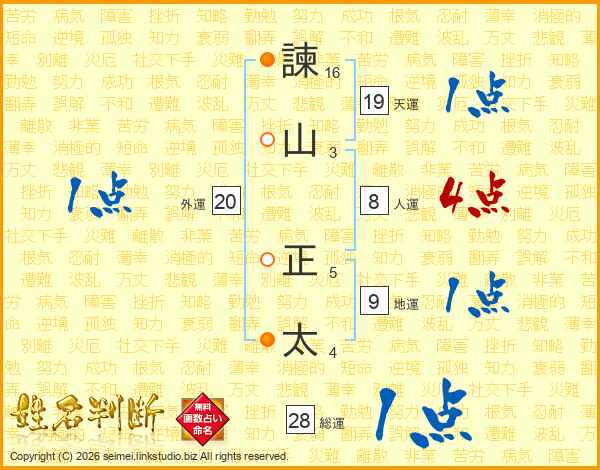 諫(16画)山(3画) 正(5画)太(4画)