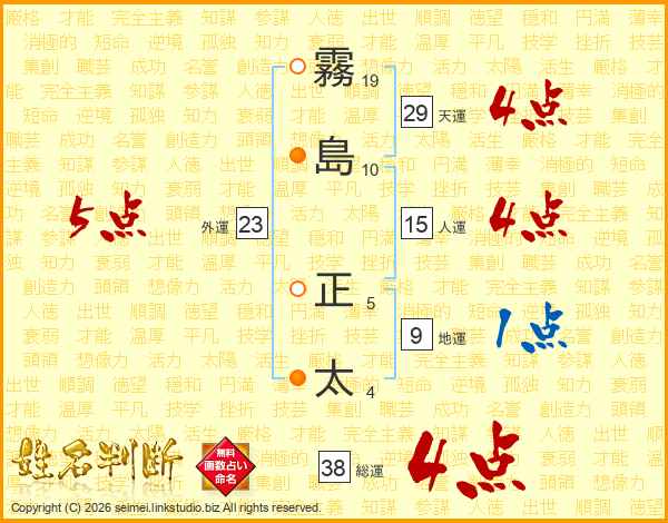 霧島正太さんの総運は38画の4点!