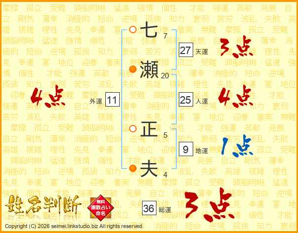 七瀬正夫さんの人運は25画の4点!