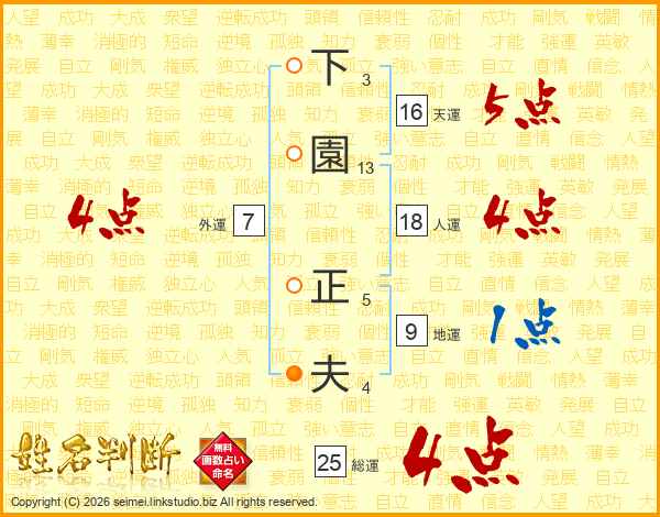 下園正夫さんの人運は18画の4点!