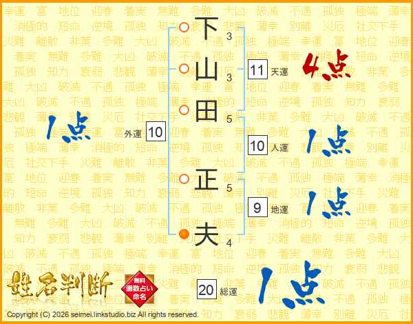 下山田正夫さんの天運は11画の4点!