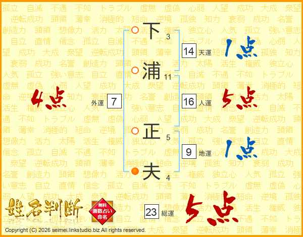 下浦正夫さんの天運は14画の1点!