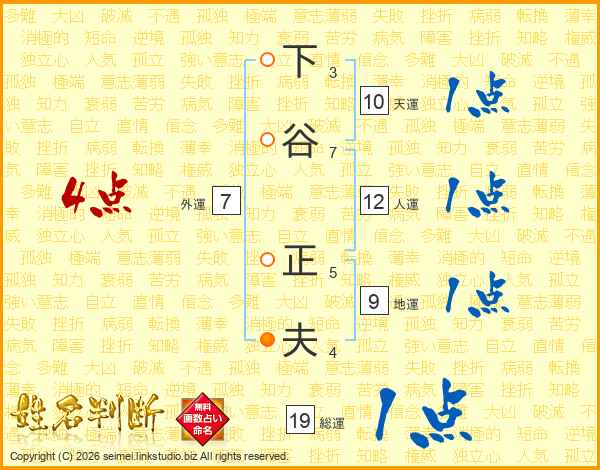 下谷正夫さんの総運は19画の1点!