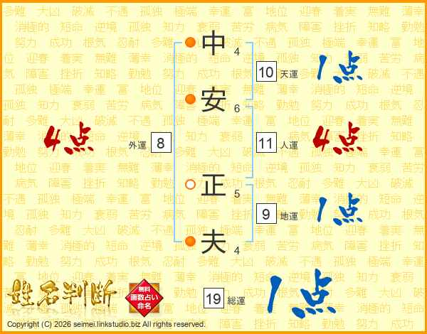 中安正夫さんの人運は11画の4点!