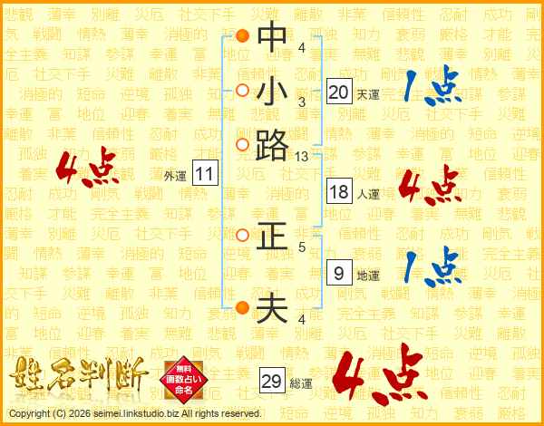 中小路正夫さんの人運は18画の4点!