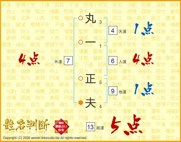 丸一正夫さんの総運は13画の5点!