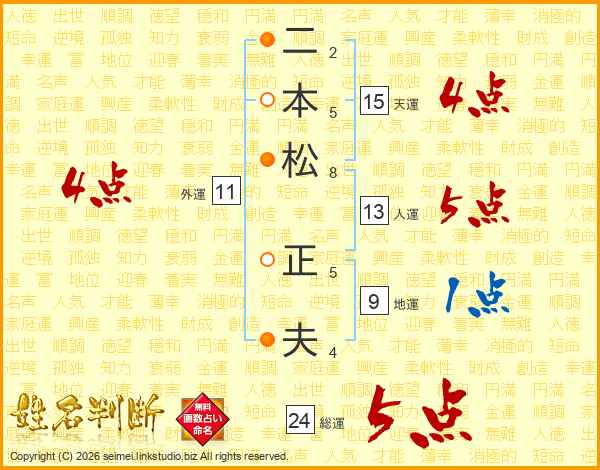二本松正夫さんの総運は24画の5点!
