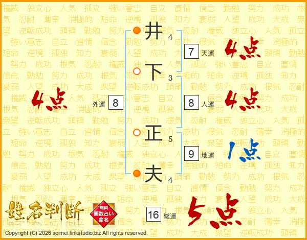 井下正夫さんの総運は16画の5点!
